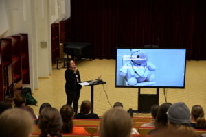 Hannikaissali täyttyi tiistaiaamuna Musiikkikampuksen opiskelijoista ja henkilöstöstä, kun Minja Niiranen saapui pitämään työpajaa aiheesta ”Äänen hyvinvointi ja huolto”. Äänenkäyttö on erityisen oleellista laulajille ja muille muusikoille, mutta jo alussa todettiin äänen tärkeys monissa muissakin ammateissa; esimerkiksi opettajat, kaupan kassat ja poliitikot hyötyvät äänen tehokkaasta ja kestävästä käytöstä. ”On hyvin todennäköistä, että ongelmia äänenkäytön kanssa tulee vastaan jossain kohtaa elämää ja silloin on tärkeää tietää, miten ääntä voi huoltaa”, kertoo Niiranen.
